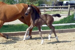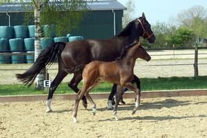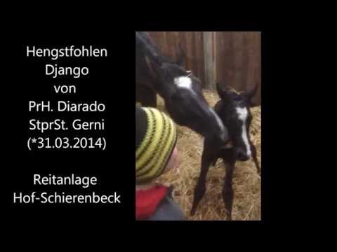 Jetzt wurde auch unser zweites Fohlen geboren. Unsere Gerni hat heute morgen (31.März 2014) ein Hengstfohlen namens "Django", vom Hengst Diarado (Station Paul Schockemöhle: http://schockemoehle.com/ger/deckstat...) bekommen. Ein Video