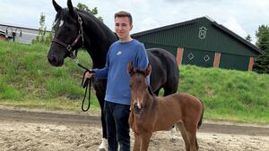 Schickes, bewegungsstarkes Stutfohlen Gloria vom Global Player aus unserer Staatsprämien Stute Donna. Gloria wurde am 25.Mai 2020 geboren.
