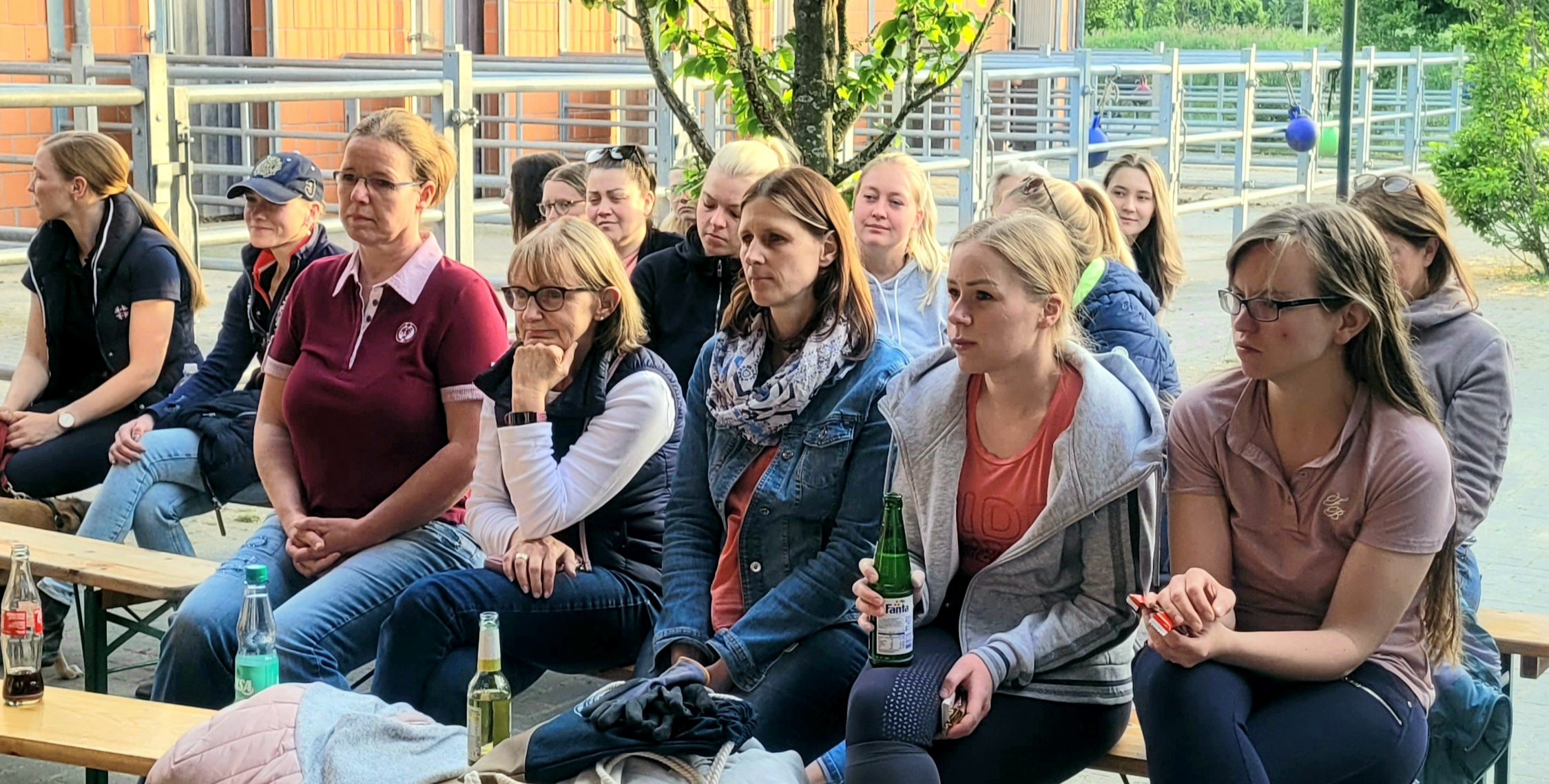 Bei schönstem Wetter haben wir unsere Mitgliederversammlung des Reitvereins draußen abhalten können. Kurzerhand wurden die Bänke und Tische vor den Aufenthaltsraum, zwischen die Außenpaddocks gestellt und die Versammlung fand in der Abendsonne zwischen den Pferden statt. Viel zu bereden gab es eigentlich nicht, aufgrund der Corona Einschränkungen im letzten Jahr waren die Vereins-Aktivitäten sehr überschaubar. Trotzdem hatten wir eine angenehme, lockere Versammlung mit über 20 Mitgliedern. Wollen wir mal hoffen, dass in diesem Jahr weniger Beschränkungen herrschen und wir wieder gemeinsame Aktivitäten wie z.B. das Hausturnier zu Weihnachten durchführen können.